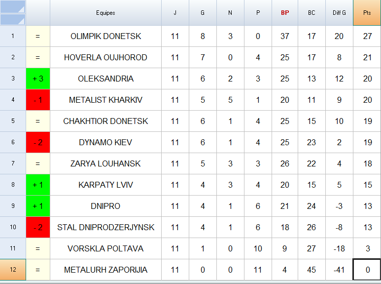 CHAKHTIOR DONETSK Vanbader DNIPRO antoninio DYNAMO KIEV Mourinho II HOVERLA OUJHOROD laguillle KARPATY LVIV wesh wesh METALIST KHARKIV mickazev METALURH ZAPORIJIA galaktikx OLEKSANDRIA poule OLIMPIK DONETSK sebastiien STAL DNIPRODZERJYNSK exempt VORSKLA POLTAVA Kelicful